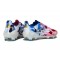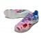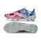 Get ready to dominate the football field with the special edition Adidas F50 x Bape Laces Elite FG soccer cleats,these f50 bape cleats have the signature camo design,the primary color is mixed of white, pink, red, and blue,the camouflage patter across the upper. The heel area and collar are a solid blue color.The soleplate has an iridescent appearance with light pink and blue accents.