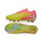 Elevate your game with the Phantom 6 By You pack elite soccer cleats,these nike by you phantom 6 cleats have a bright colorway of yellow and pink that demands attention on the field,the front of upper is yellow combine with grey multiknit stripes,the middle and above is in a clean pink color with a big white Swoosh logo,the heel of the cleats is white.The nike by you phantom 6 cleats are focusing on precision, touch, and agility.